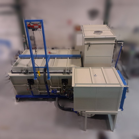 Este conjunto se compone de dos cámaras de quemado o piro-líticas, que pueden trabajar a la vez o individualmente, compartiendo la cámara de postcombustión, encargada de incinerar los gases procedentes de la combustión de sendas cámaras, cumpliendo con la normativa de emisión de gases actual.